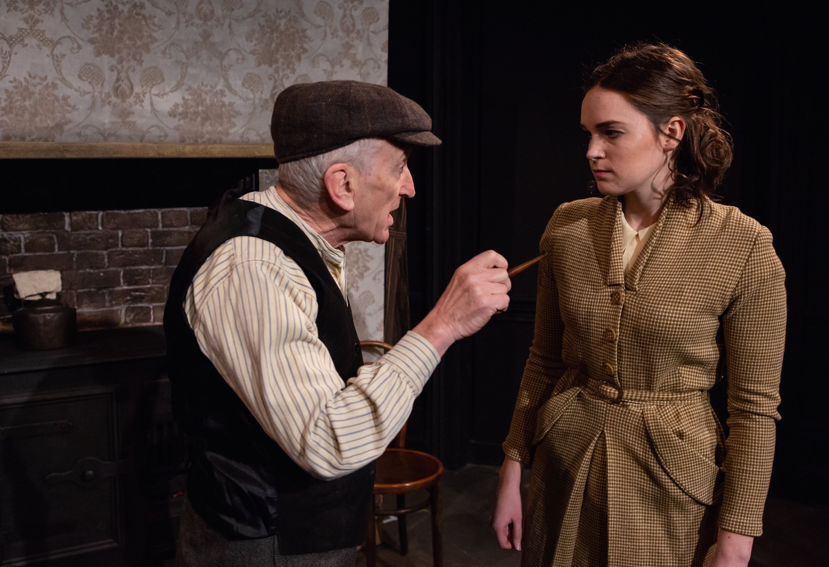 Jeannie is a superb play by Aimée Stuart. First performed in 1940, now returning to the stage for the first time after 80 years. Set in 1936 in a little town in Scotland, we are introduced to downtrodden Jeannie who is expected to take care of her Father and their home since the death of her mother. He has staunch ideas about a woman’s role within the house, nowadays this is viewed as sexist and controlling. However, very typical of attitudes from that day gone by era. The couple is featured in the photo above.