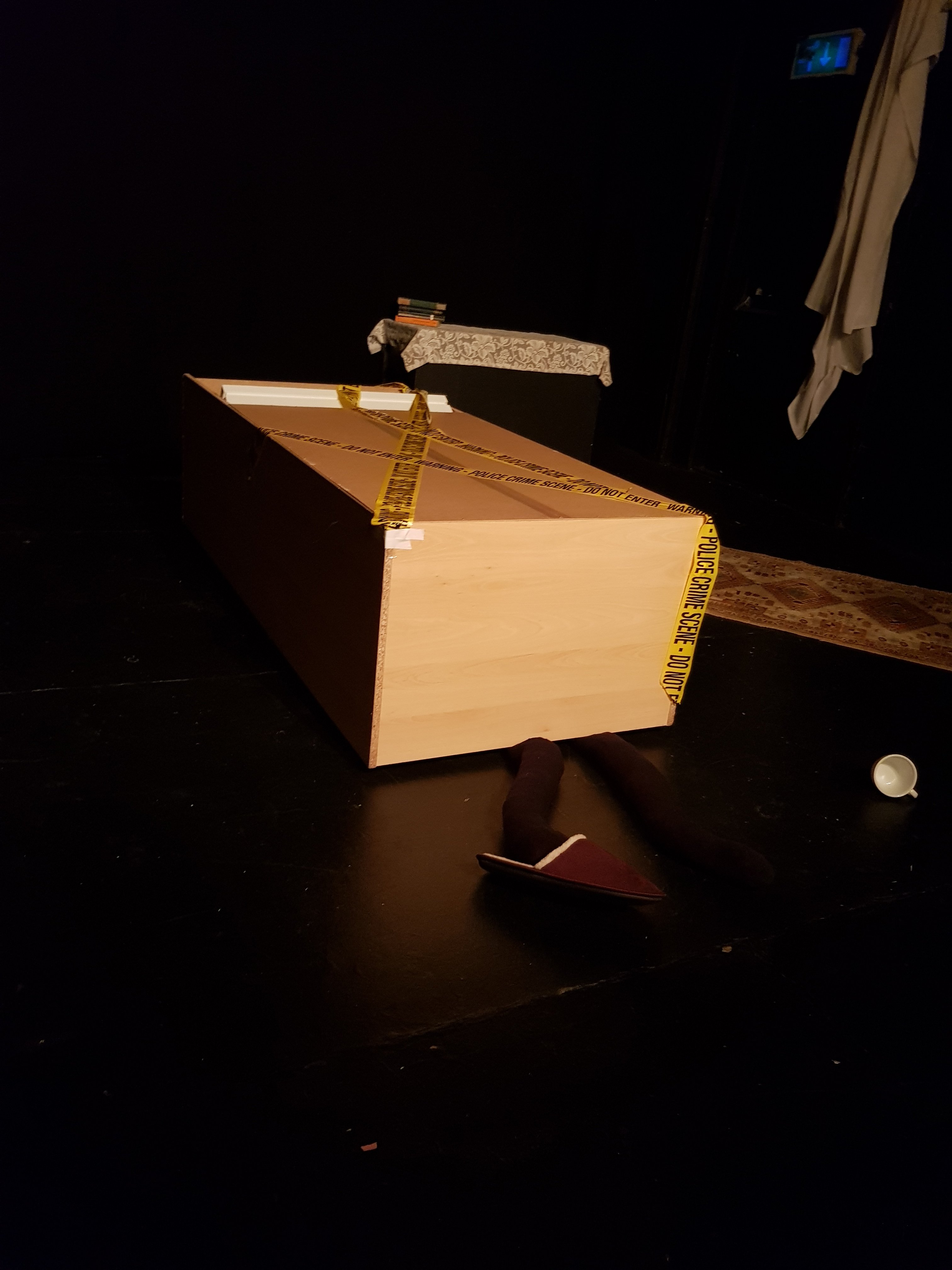 Mr and Mrs Fox take centre stage as they sit in their blow-up chairs, tolerating each other as they share the boredom of another morning while reading the local papers. The eccentric upper class married couple are in their words “modern” which for this couple actually translates into rich, overprivileged and bored. Where the murder of an innocent young lady becomes the highlight of their mundane day!