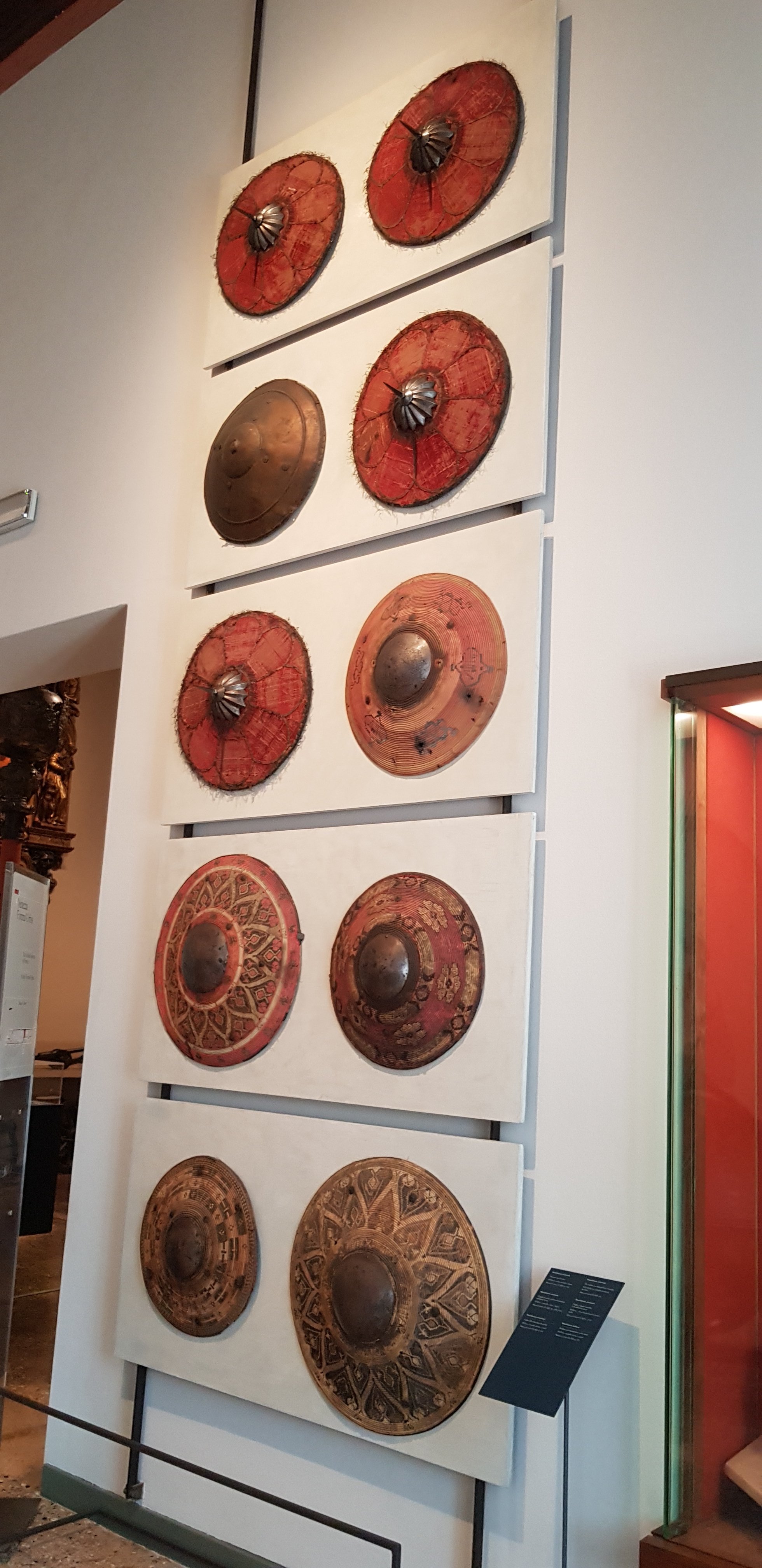 The first part of the museum is the Royal palace leading through to the Archaeological Museum. There are some interesting features especially the vast array of shields as seen below.