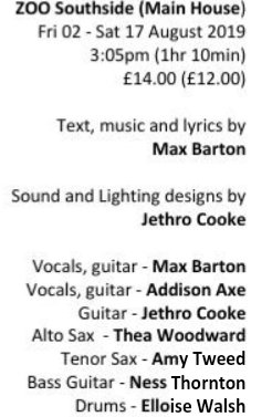 This autobiographical family history musical is a beautifully constructed Memoriam for Barton’s Grandpa who himself was a musician. The tribute paid to Mike at the end is tear-jerking.