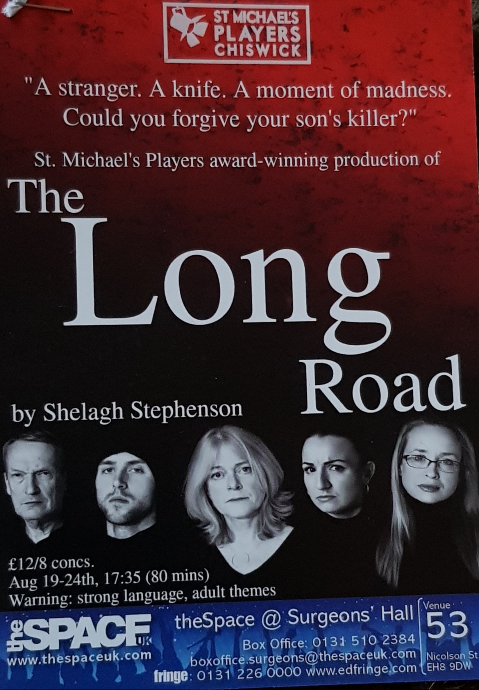 The Long Road tells the story of a family torn apart by their son/brother stabbed to death outside a shop. In order to get closure and answers meeting his killer appears to be the only way forward! But at what emotional cost can the family agree on this!