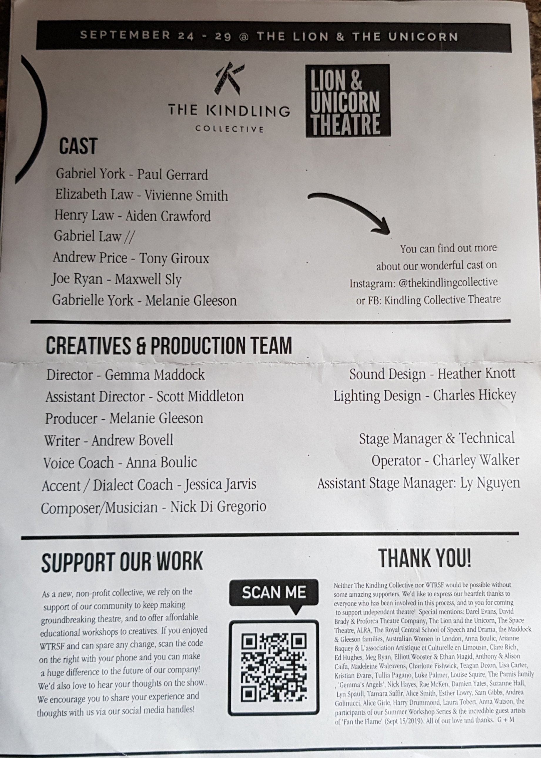 Director Gemma Maddock really captured the heart of this story the relatively larger cast in the smaller Fringe Theatre shows the vision and creativity in her attention to details as space is more compact and utilizing every inch of the stage is vital especially with the amount of movement that takes place.