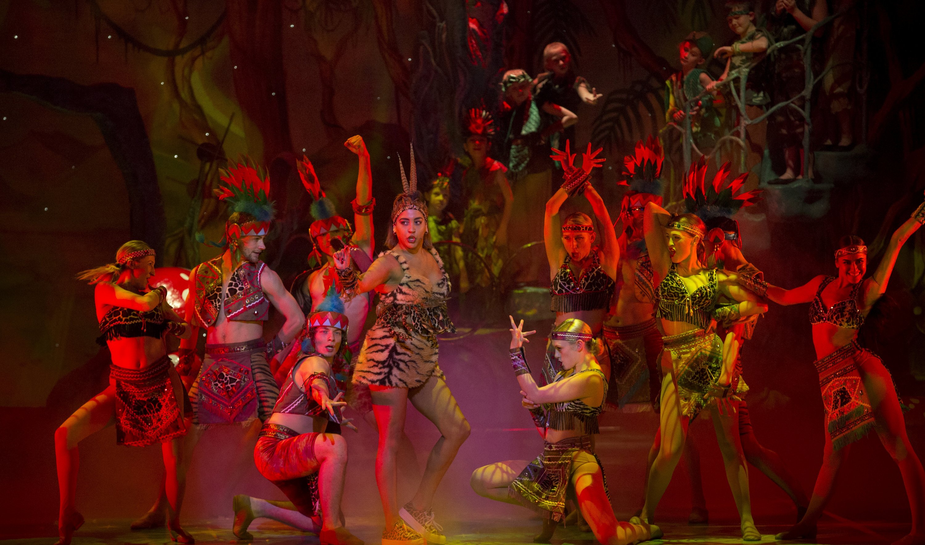 Costume designer Ron Briggs has certainly created some spectacular outfits for this festive spectacular treat. The costumes worn by Tigerlily (Micha Richardson) and The Neverlanders ( the Timbuktu Tumblers) were animal prints designed to camouflage into the scenery which was incredibly striking. The encore costumes worn by the entire cast of white and blue designs were breathtaking.