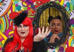 Snow White played by Cara McInanny lives with her father Hector (Johnny Morton) who has remarried Jane de Villiers (Sarah Connolly) after the death of his wife. The roles have been reversed in this version and she has not married into money he has. De Villiers holds the purse strings due to her fame as a successful model in her younger years, therefore, vanity and retaining her good looks are paramount to her superiority and helping to maintain her egotistical opinion of herself and image.