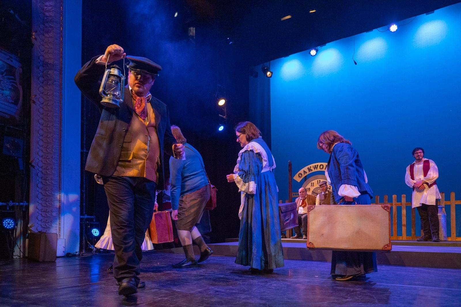 Tom Hatchett who plays Mr Perks the stationmaster delivers some very funny one-liners throughout the performance his delivery and timing for comedy are brilliant. He is a strong articulate actor who delivers his lines with a lot of power and conviction he can be seen below carrying the lamp.