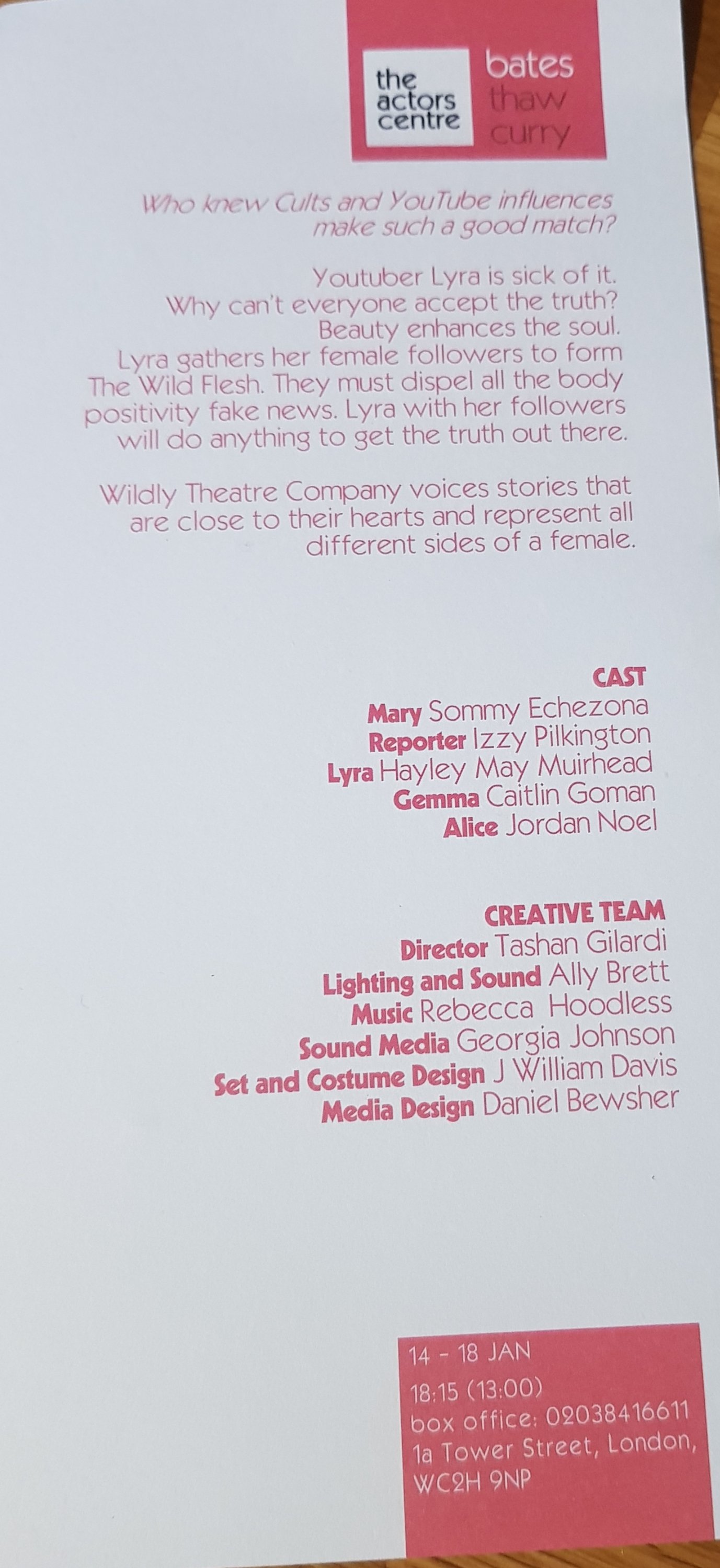 The play opens with a series of Youtube style videos where our main character Lyra (Hayley May Muirhead) speaks directly to the audience/followers. Showing us the correct way to apply make-up, talking about body positivity and her top three life hacks. All sounds perfectly innocent and quite commonplace online these days.