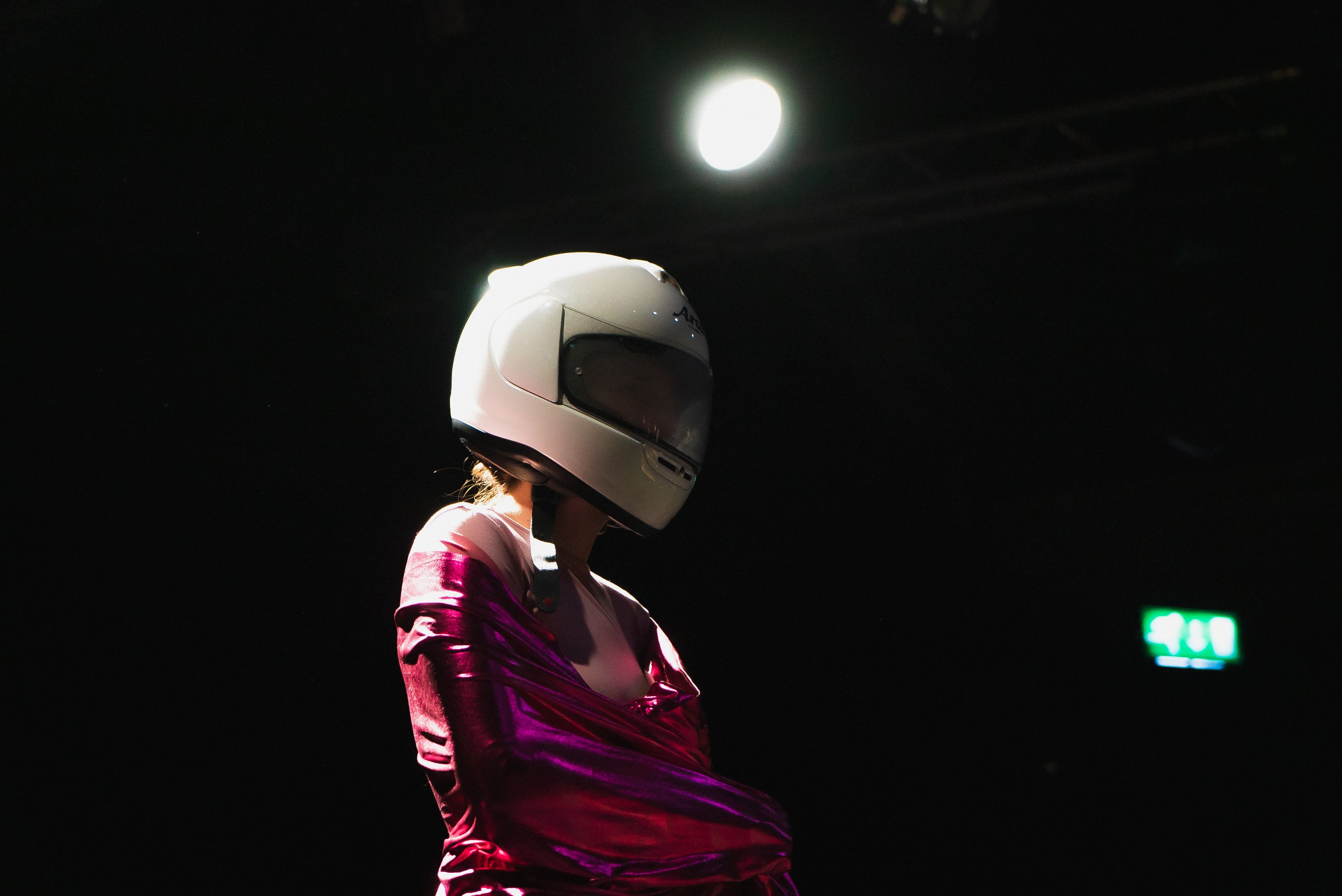 The alien dressed in a baby pink all in one with a crash helmet as pictured above tries to make contact with the humans. The group of three are so absorbed in themselves they fail to see it. It’s very often the case that humans fail to see what is right in front of them. It was hardly surprising that it was only as the alien became more human in appearance that the group began to pay attention to its presence on the stage.
