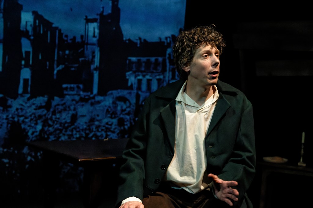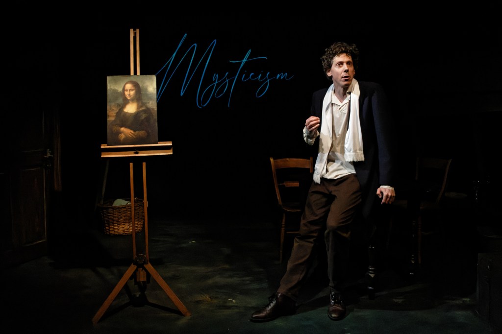 Karl Swinyard’s set design emphasises the mystery and poverty in which Lotado resided. The windows to the right of the stage allow suspension of disbelief that you are sitting in a light-deprived basement bedsit. A perfect setting for the two-year hostage home for the Mona Lisa.
