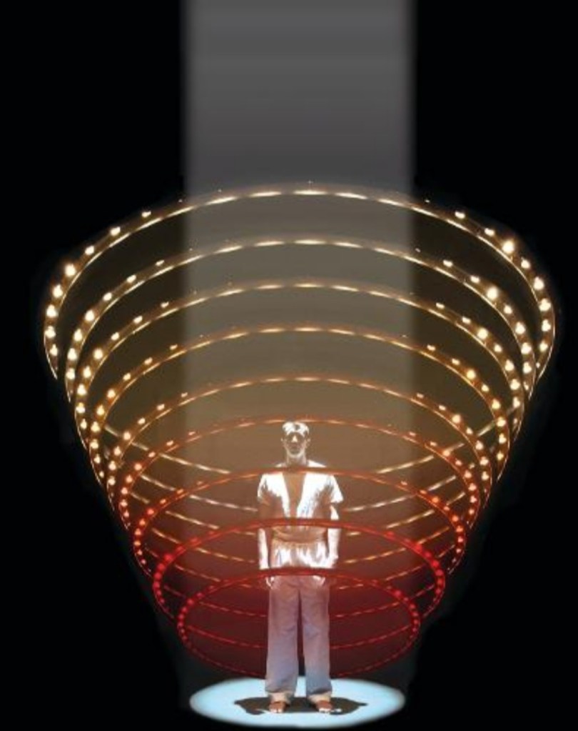 Placing the storyline in the structure of Dantes 9 circles of hell turns out to be a clever device. Two large circles dominate the stage one for the cast to perform in and the other to add light from behind. By the time you too have experienced verbally the events that took place in Iraq through the sixty-five-minute performance. It leaves you feeling that you have had a short trip to the circles of hell.