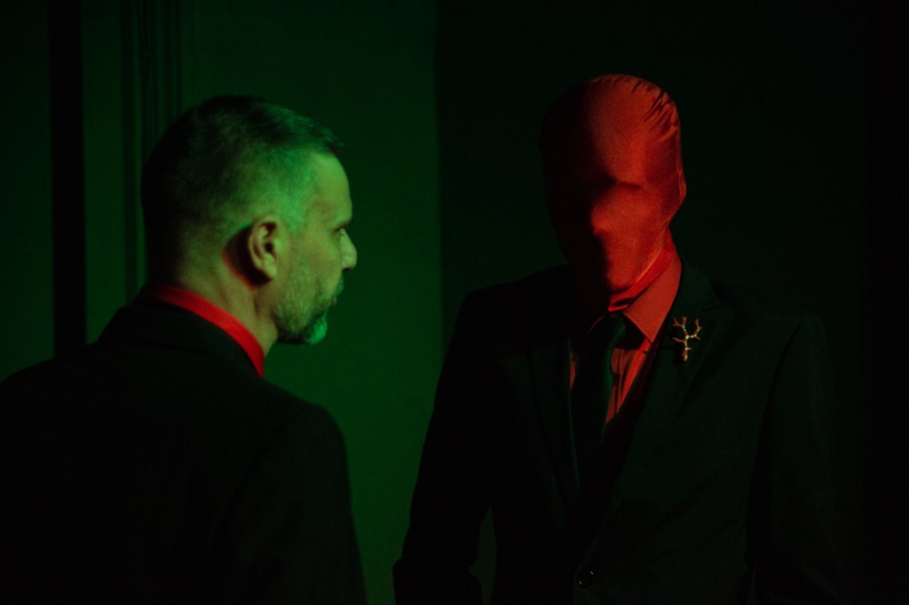 The intense start of The Coral creates the foundations between The Millionaire and his doppelganger creation (Adam Woolley). With both actors wearing Red hoods created equality between the characters and they entwine and seperate. Even his close Personal Assistant (Ariell Zilkha) unable to tell the pair apart.