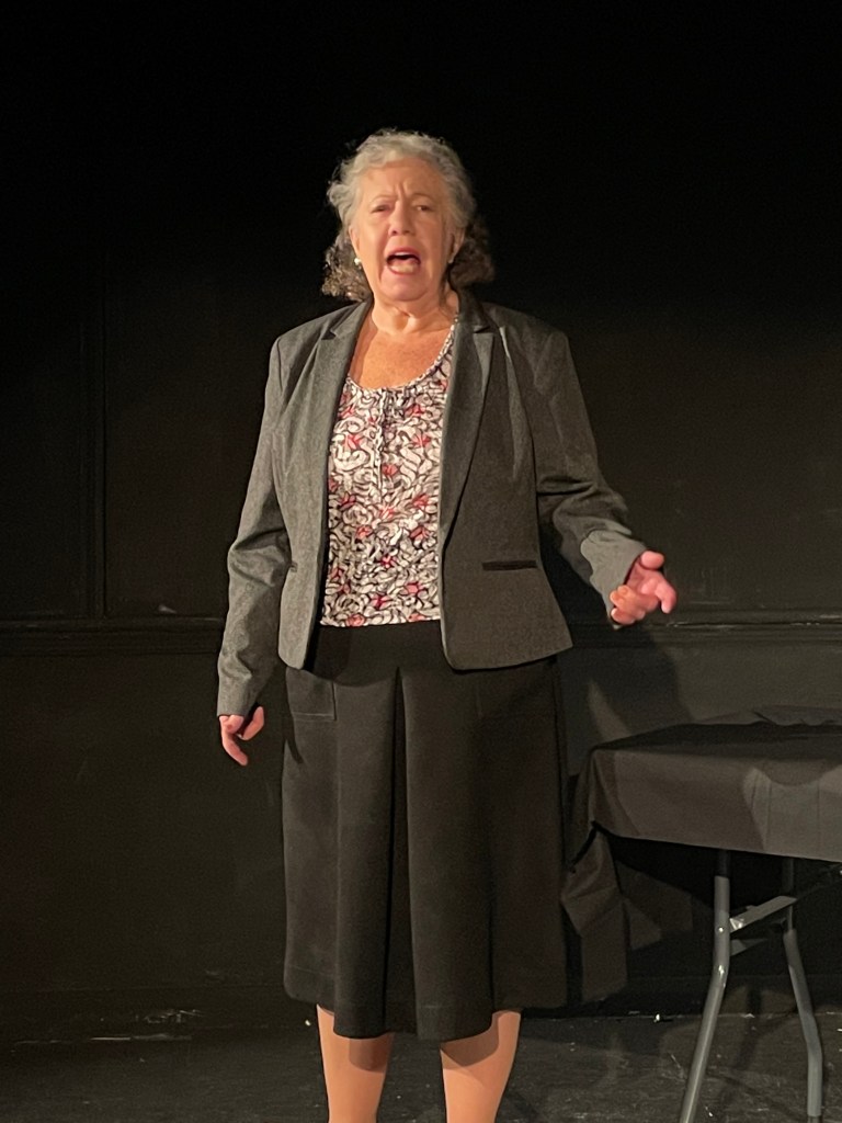 Hollingsdene Labour Party meeting opens up proceedings for the evening’s performance. June Wright (Carrie Cohen) the mature stalwart long-term Labour member chairs the meeting with a strong authoritative presence, leading the meeting fairly to ensure all the comrades who have gathered there behave in an orderly fashion allowing everyone a chance to speak.