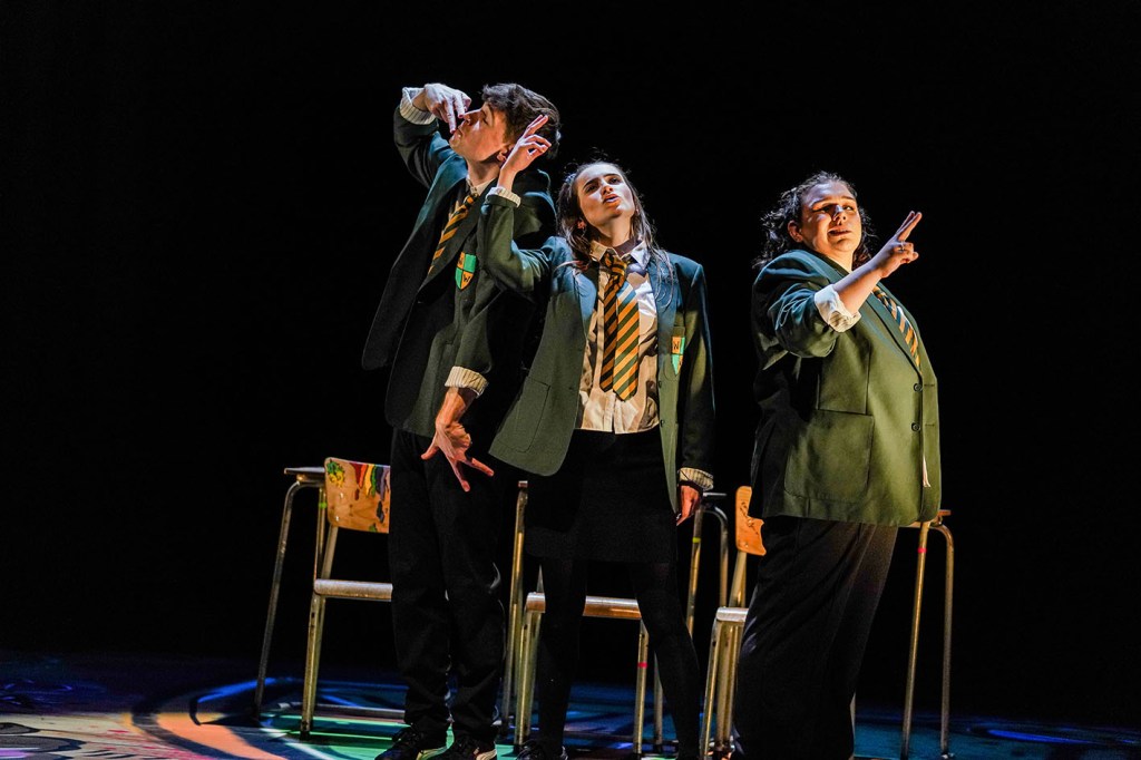 The cast of three (Michael Ayiotis, Terenia Barlow, and Ciara Morris) switch quickly between the role of students and teachers throughout the performance. Quick-witted humour, dancing, and singing (sort of) keep the performance flowing. The fast-paced changes and challenges faced by the secondary school environment have been perfected.