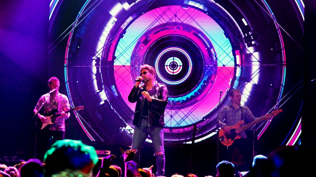 I found the lighting at times blinded me with various flashes. With the stage backdrop constantly in motion with various background scenes, especially the iconic Los Angeles scene with the helicopter circling the city in the music video for Outside. There was always something taking place behind accompanying the music set.