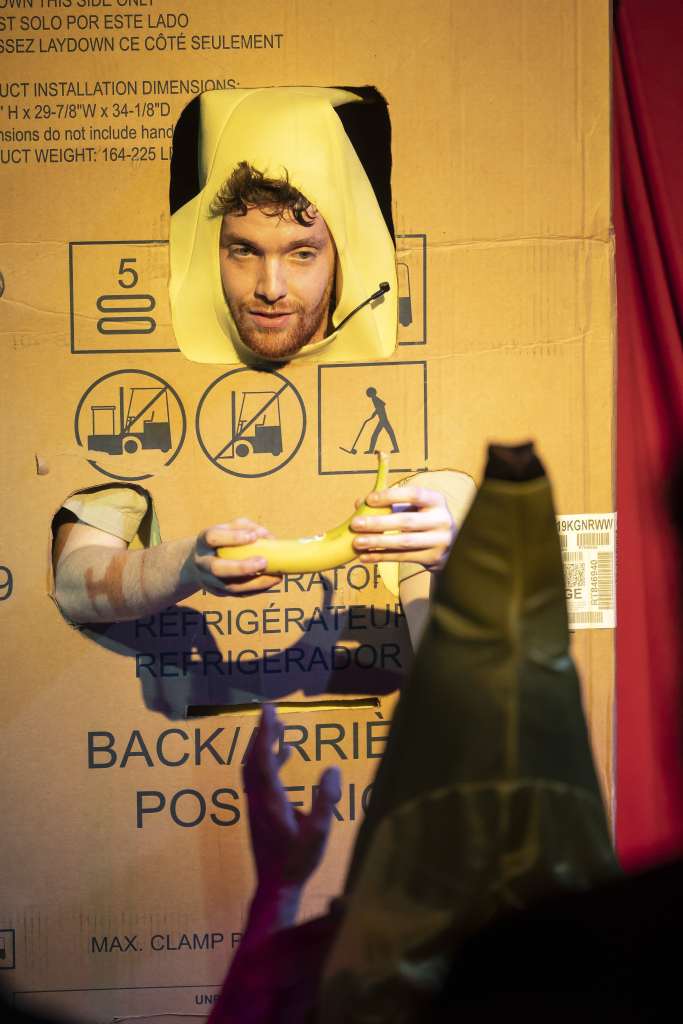 I bought a new couch when I moved into my current place like a year and a half ago. It came in a big box. The show’s director, Bailey Nassetta, happened to have a banana costume lying around, so I thought… why don’t I put on the suit, get into the box, and see what happens?