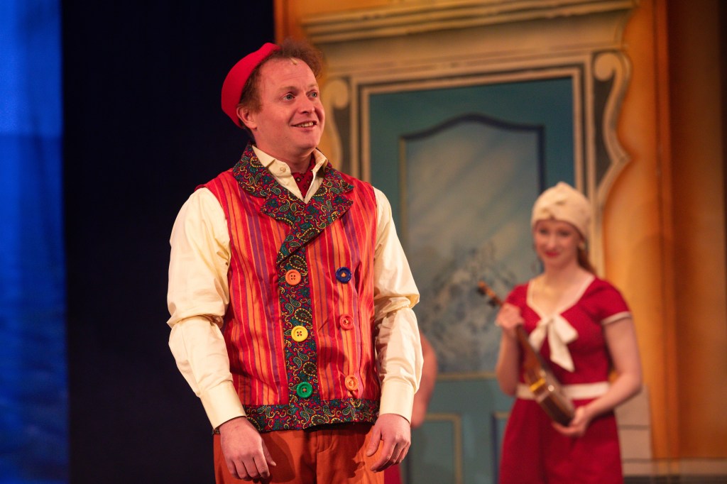 Musical Director Tom Attwood is based in the top right-hand side balcony area. He can be seen engaging with the cast throughout and the music never misses a beat. The timing and rapport of all the cast is excellent. Along with accompanying instrumentals by cast members Ed Thorpe ( Buttons) and Georgina Field (Baroness).