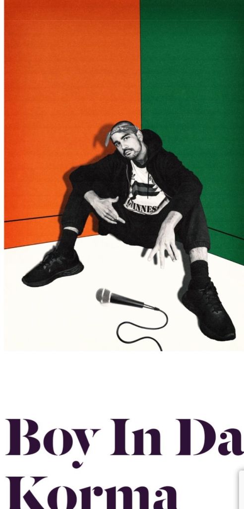 Writer Jaisal Marmion gives a solo performance as Liam from Skibbereen in Ireland in the fast-paced play Boy In Da Korma. A 17-year-old lad who thinks he is the reincarnation of the legendary rapper Tupak Shakur who was murdered in Los Angeles in 1997 and attempts to prove this at any given opportunity.