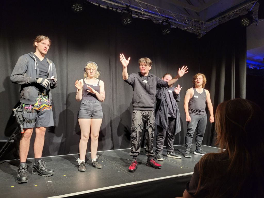 The abhorrent way in which they speak to their two students is shocking for example stapling their feet to the stage. There’s a complete lack of respect towards their “Tech” actor, not actual tech. Who then gets fed up and answers back explaining that there isn’t a show without him.