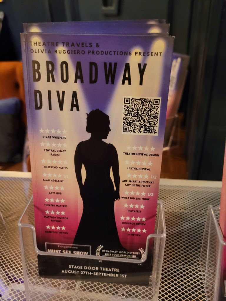 Olivia Ruggiero presents Broadway Diva in The Stage Door Theatre in Drury Lane. Bringing a selection of well-known musical numbers to the stage from popular West End Musicals for example Les Misérables, The King and I, and Phantom of the Opera to name but a few. Ruggiero is trained in musical and Opera singing and we get a taster of her musical talents throughout the show.