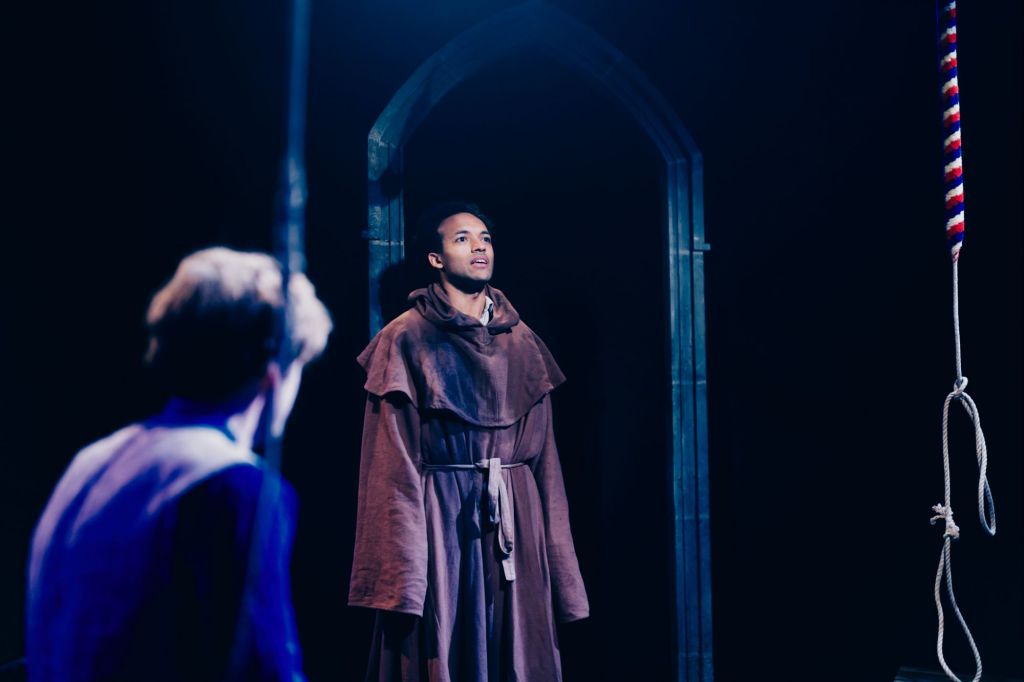 Director Jessica Lazar brings the dystopian dark tale to life inside a belfry. With the atmosphere alive and electric raging outside there are times that I was engrossed in the storyline and the sudden flash of lightning made me jump. Although everything takes place within the small bell-ringing area the audience gets a strong sense that the world is at war with the elements outside.