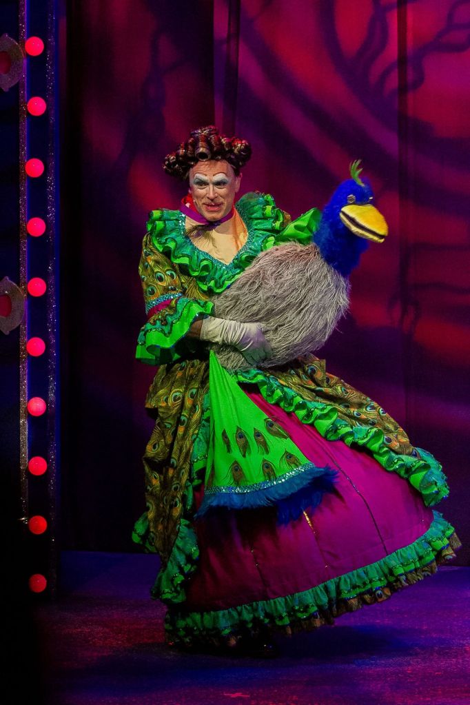Nanny Nutkin played by Chris Jarvis has a bright and fun selection of costumes, especially the stunning green Peacock dress. Although King Tucker could not get her name correct despite being reminded every time. All part of the Pantomime fun and there are some creative versions of her name. I find the range of costumes worn by the Dame’s is one of my favourite parts of any Pantomime.