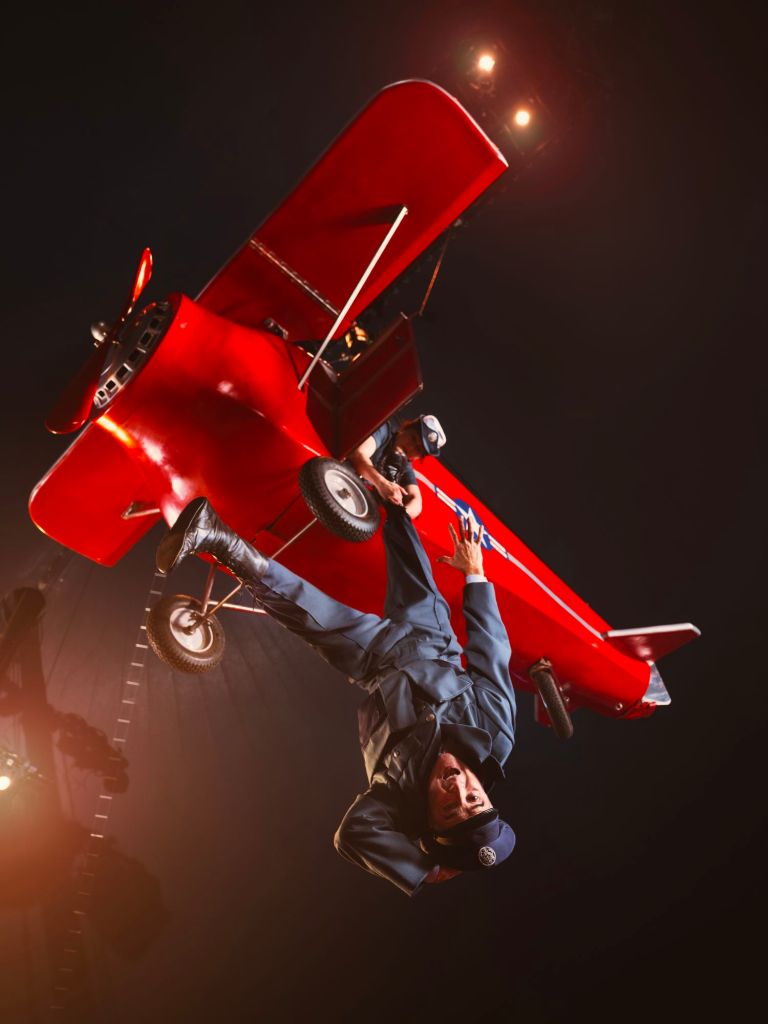 The highlight of the performance takes place in an aeroplane suspended from the ceiling. Pablo and Vickki leave the audience on the edge of their seats as they attempt to take the sky. The timing is impeccable with trap doors and loose wires making the pair’s life almost impossible to be inside the plane.