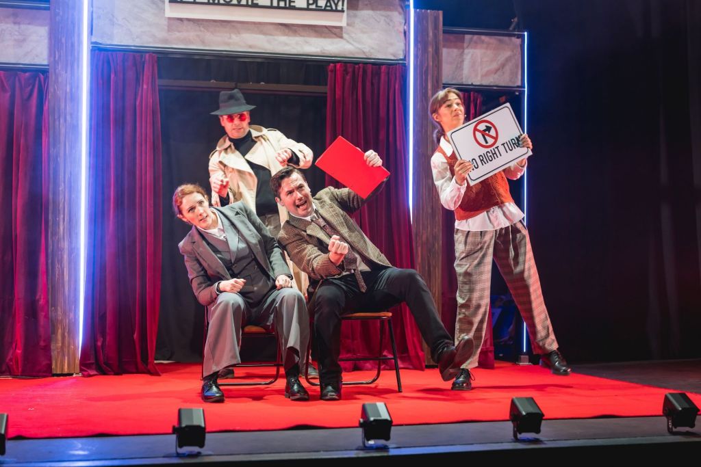 The movie is Spy Movie: The Play! Jane Blonde (Jo Hartland) and scriptwriter Ian Flemish (Jamie Watterson) are on a mission to stop Evil (Katy Daghorn) and Mr.Hugs (Matthew Howell) from taking over the world.