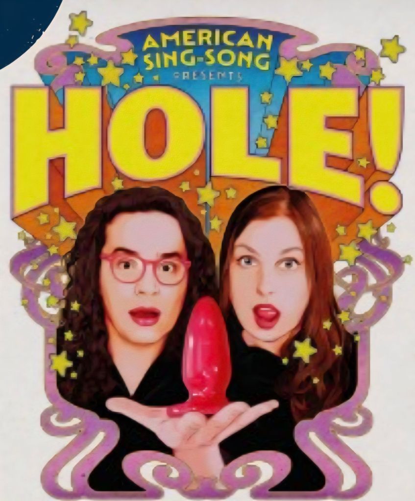 Hello my name is Jake Brasch and my name is Nadja Leonhard-Hooper and together we are AMERICAN SING-SONG. We write and perform insane, filthy, heart-forward musicals with nothing but a piano, a foley table, and a gay little dream.