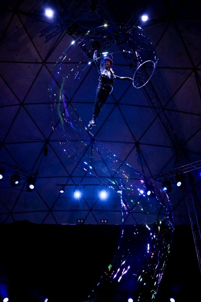 At this point in May, it’s a year old. It was a very quick development—four months from concept to stage. We started with Brighton Fringe 2024, then went on to do Sydney Fringe and Adelaide Fringe. The show has progressed faster than any production I’ve worked on. I think it’s because of the natural pairing of aerial and bubbles—they both belong in the air. And also, the show is really good. It developed at a rapid rate. Now we’re performing in the Circus Hub at Underbelly, which is an amazing platform.