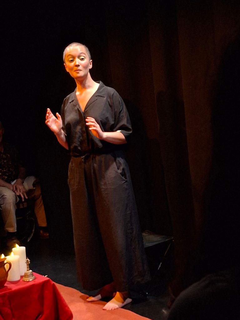 The story of Archiles, Death of the Gods is performed through gesture and movement. Which is perfectly timed and practised within the challenging small area available.