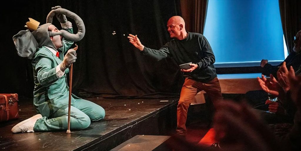 Going for Christmas Eve dinner with my partner, we spoke about the elephant in the room we’d face at the dinner table. The inspiration came. Wouldn’t it be amazing to make a show called elephant in the room… about an elephant in a room? After a while, Babar appeared. And with him, the colonialist review of the great author Ariel Dorfman, with whom Babar is upset in my play and I have personally thanked him for the fascinating critique that has also inspired the show.