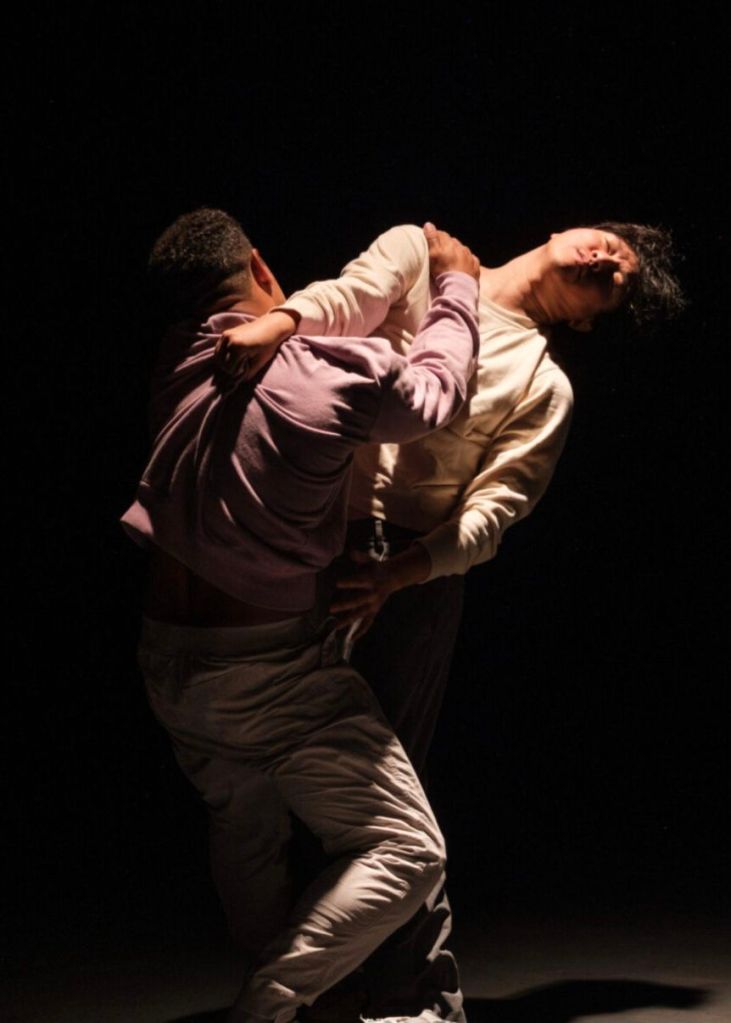 The choreography balances individuality and connection, side-by-side solos highlight the differences between the two dancers. Wang sinewy, yoga like with an almost boneless fluidity. Abreu’s more pronounced muscular strength suggests the Brazilian martial art, the Capoeira.