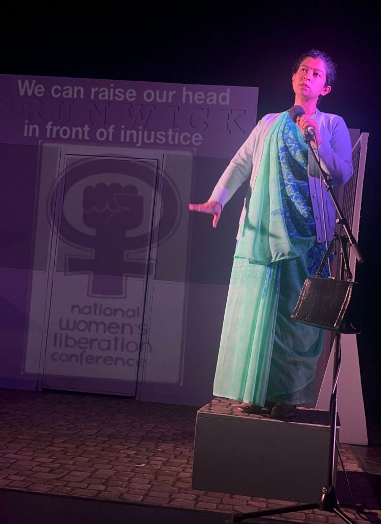 The story is focused upon the strong, determined and highly inspirational strike-leader Jayaben Desai played by Rukmini Sircar, who was one of the many newly arrived Gujarati women workers from East Africa who had followed their husbands and wanted to work and contribute to their family and society.