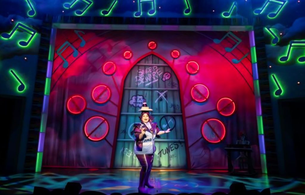 However, Emma Norman in the role of Fleshcreep the Giant’s right-hand woman and every driver’s nemesis plays a traffic warden although in this instance a music warden, giving out tickets to anyone caught singing or playing music, snd boy is she good at her job. Norman is a close second and plays the Pantomime baddie brilliantly and certainly raises the “boos” in the auditorium.