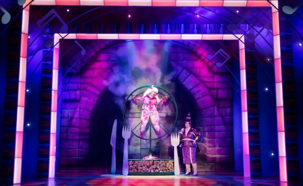 Writers Plested, Brown and Wilsher have taken the classic Pantomime Jack and the Beanstalk and added a range of music that will be recognised by all members of the family plus a throwback to when the original Pavarotti had performed in adverts (these are available to watch on YouTube). The humour is slightly risqué in places, and teenage audience members are likely to understand and find the underlying references funny.