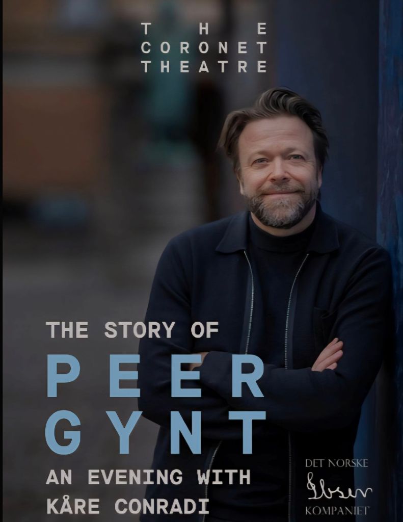 Kare Conradi’s one man show, Peer Gynt playing at the Coronet Theatre reduces Ibsen’s massive 4–6-hour epic drama to a mere 1hr and 7 mins without apparently losing any of the story or drama. Stripped back to a single actor and a lone chair, it brings the essence of Ibsen to a wider audience.