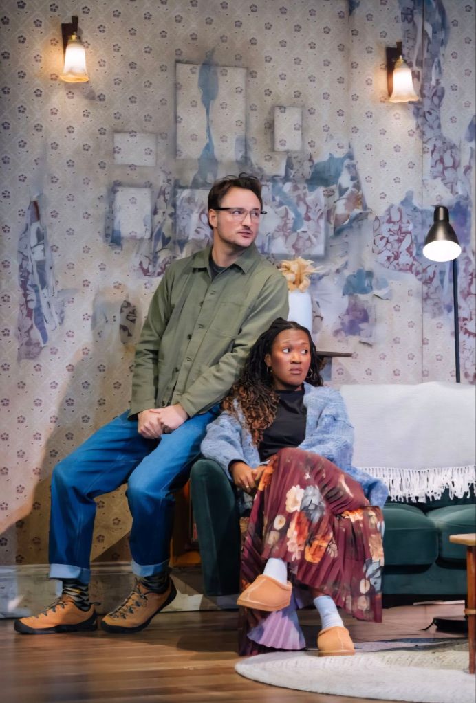 Stage designer Anna Fleischle offers a interesting platform to allow the audience to still see parts of the original features and wallpaper against the beginning of the “improvements” which are taking shape. Although Ben suggests that these improvements are ripping the soul out of homes that saw generations of loving families living there before.