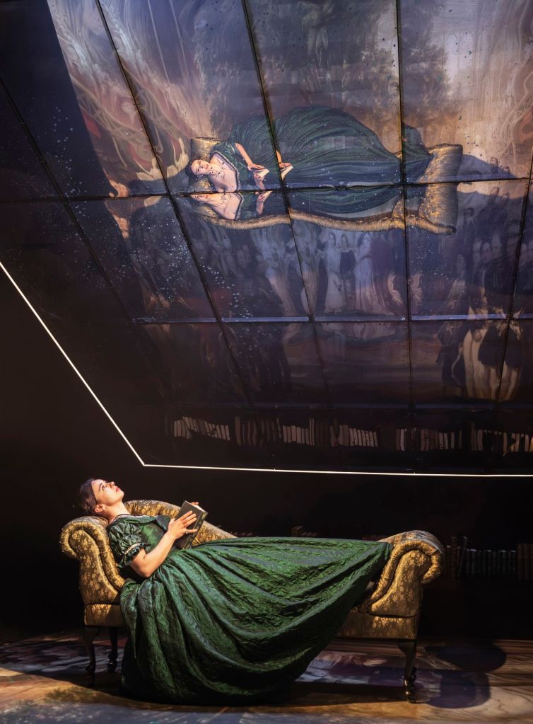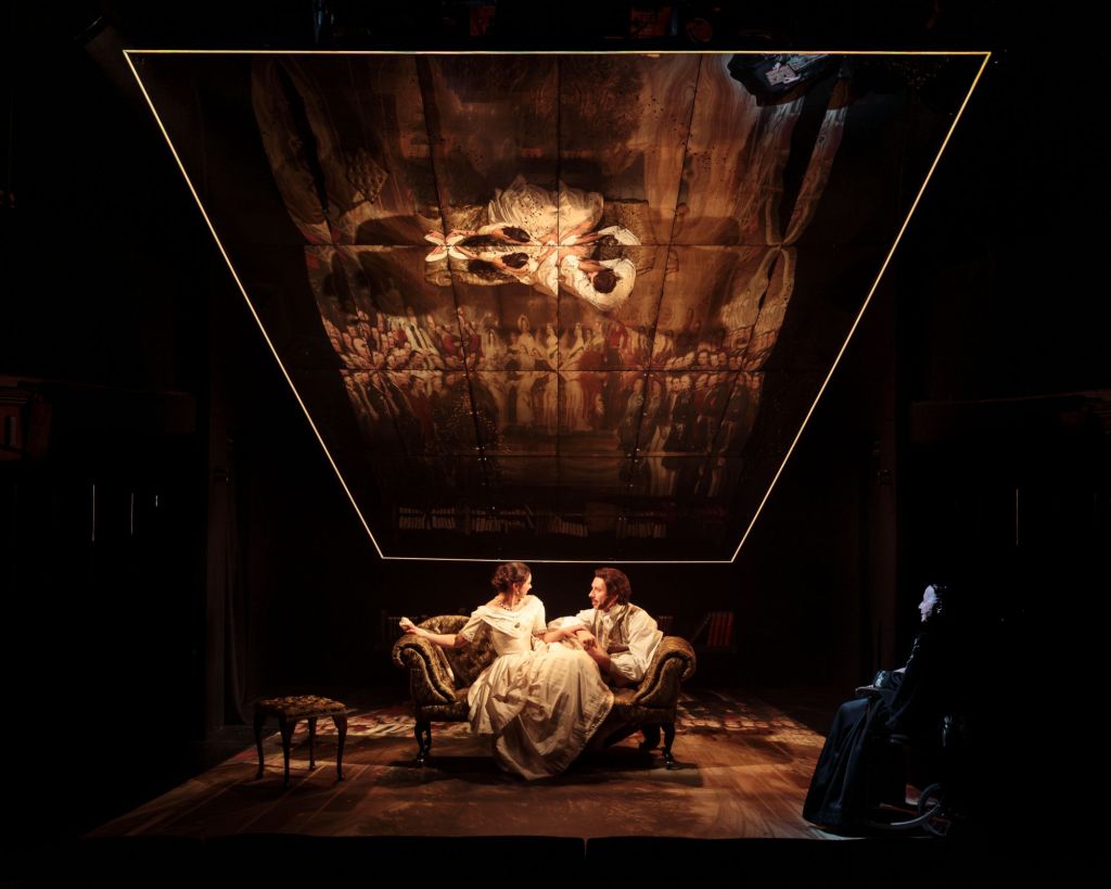 The stage design by Alex Berry combined with lighting designer Ben Jacobs is incredibly effective, the glass sloped ceiling above the stage reflecting the past and present at the same time. Echoing how Queen Victoria is reflecting on her life and facing a few difficult truths along the way.